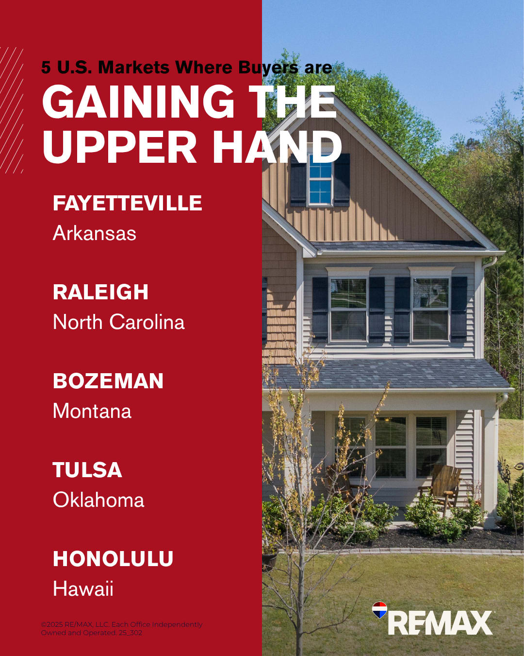 It mostly remains a seller's market across the country – unless you're a looking in certain areas. According to the August 2025 REMAX National Housing Report, the following five metro areas in the U.S. experienced some positive shifts for buyers: increase in listings, decrease in pricing, and/or longer days on market.
