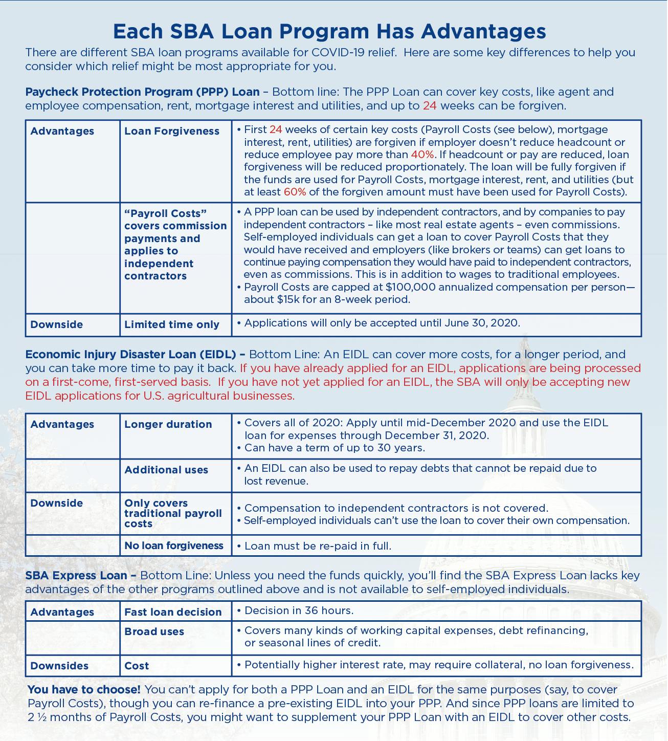 RE/MAX continues to monitor the Paycheck Protection Program and Health Care Enhancement Act (H.R. 266), which will provide additional funding for small businesses, including for PPP loans and SBA Economic Injury Disaster Loans and Grants.