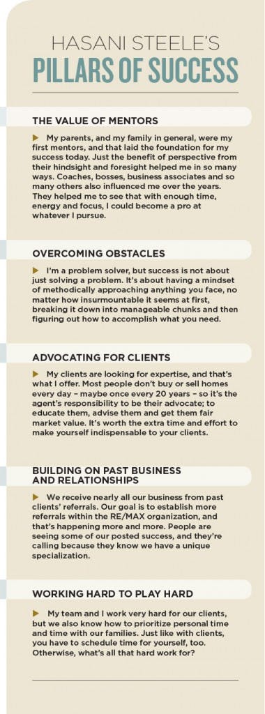 That’s when Steele moved into real estate. As Steele’s business grows, so does his enthusiastic staff. “Hasani is great to work for because you get to do a little of everything, and he values everyone’s opinion,” says Alicia Nsemo, client manager for Steele Consulting Group. “He’ll ask for your ideas and then tell you to go do it.”