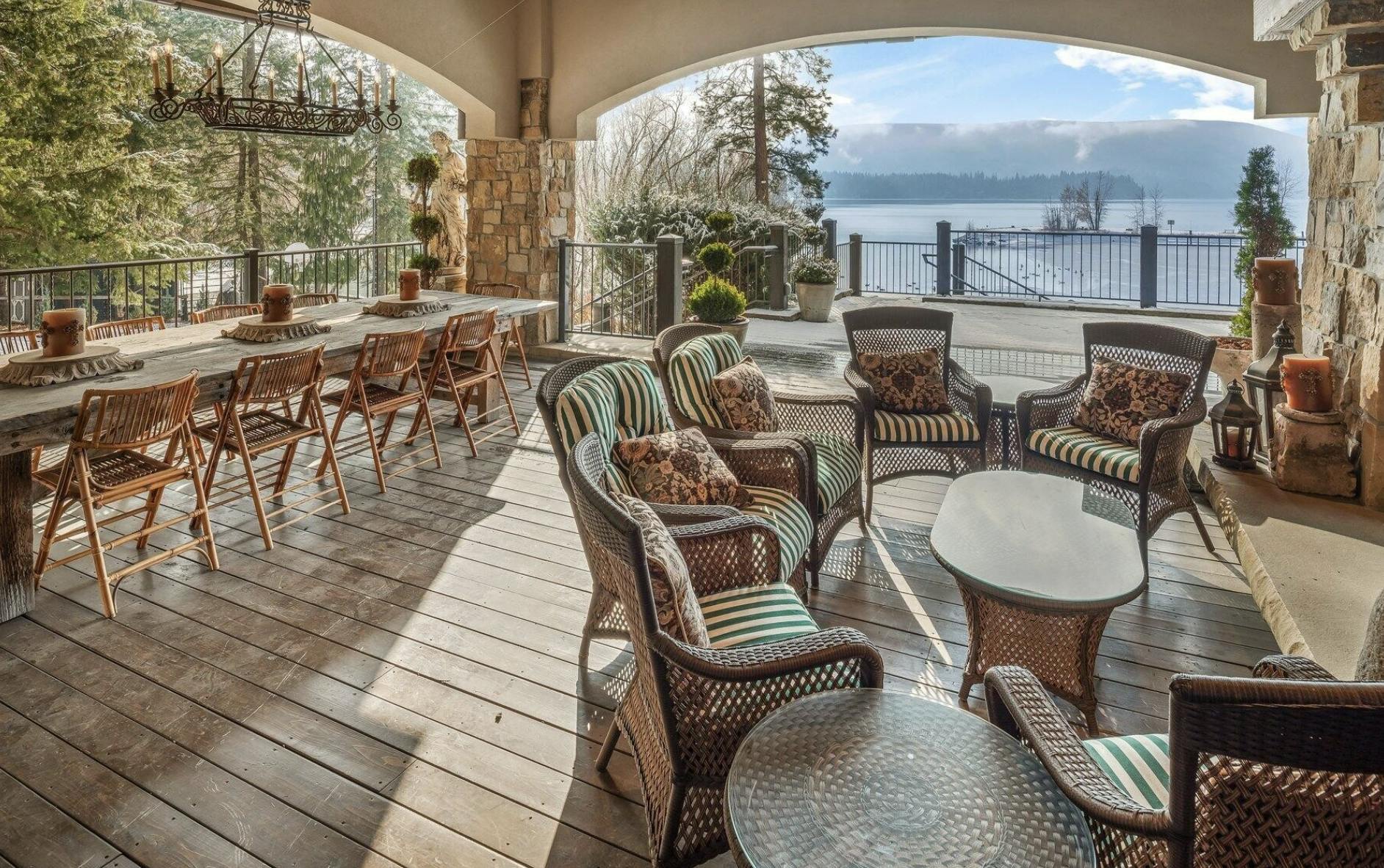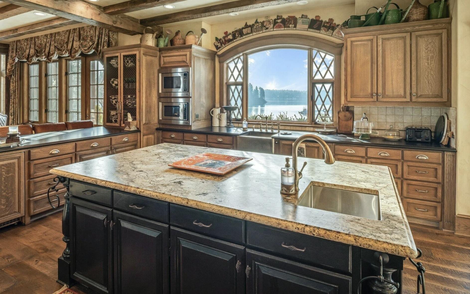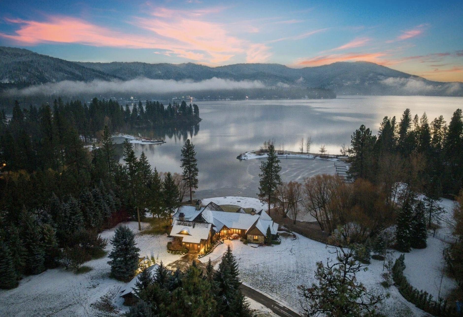 Details: Set on nearly six acres of land, this luxury lakefront estate offers tranquility year-round. With intricate detail throughout, the 5-bed, 7-bath home features a chef’s kitchen, a grand rock fireplace in the main living room, designated outdoor entertainment space, private guest quarters, and more. In the summertime, enjoy 420 feet of private sandy beach, complete with a dock for boat parking.