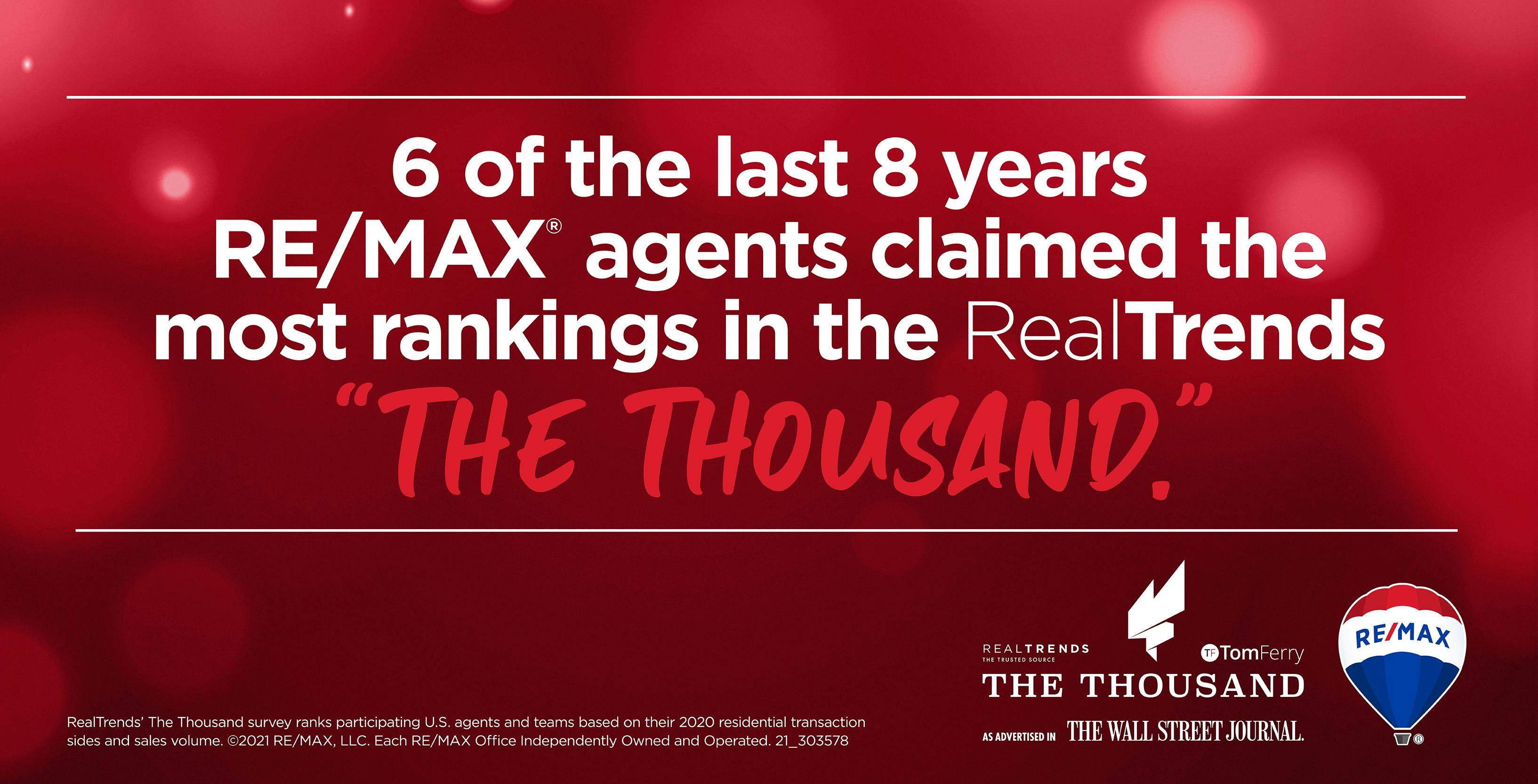 Other notable recognition of RE/MAX agents and teams in the 2021 “The Thousand” rankings include: