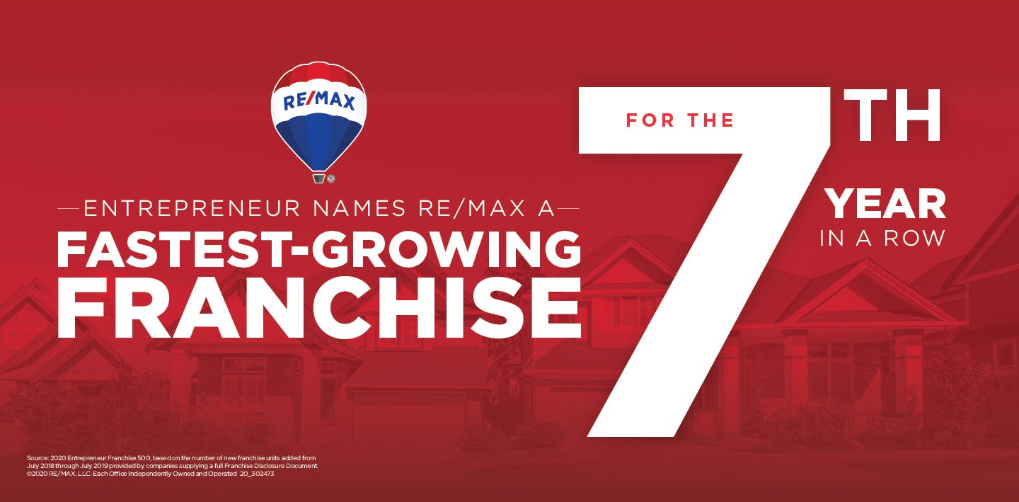 RE/MAX likes to move fast and the world knows it. Entrepreneur magazine’s widely respected 2020 Fastest-Growing Franchises Ranking named RE/MAX, LLC to the list for the 7th consecutive year. This is the 19th time RE/MAX has made the list and the second time two RE/MAX Holdings, Inc. brands were recognized together, with interest in owning a RE/MAX and/or Motto Mortgage franchise remaining high. In addition to making the Fastest-Growing Franchises list, RE/MAX also ranked as the No. 1 real estate brokerage franchise on Entrepreneur ‘s 2020 Franchise 500, released earlier this year.