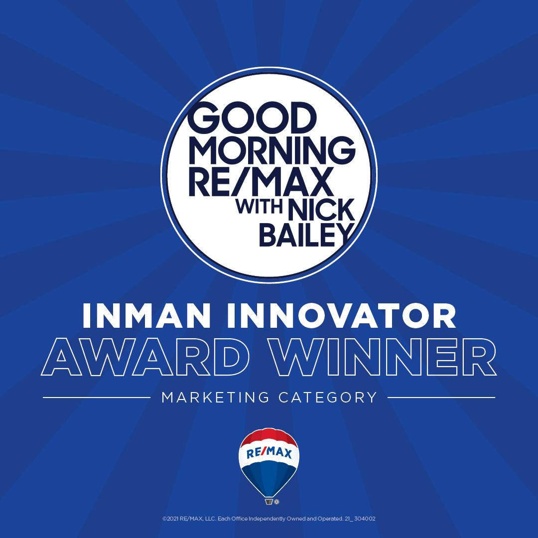 Throughout 2020, the RE/MAX network and real estate professionals from around the world tuned in each week to watch “Good Morning RE/MAX.” This year, “Good Morning RE/MAX” (GMR) earned a 2021 Inman Innovator Award at Inman Connect Las Vegas, held October 26-28.