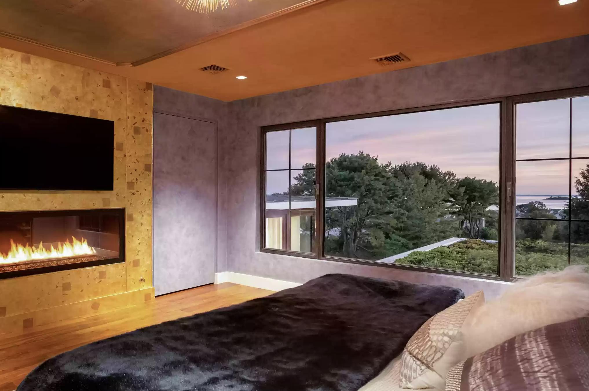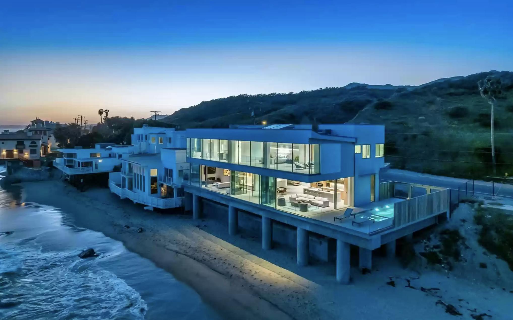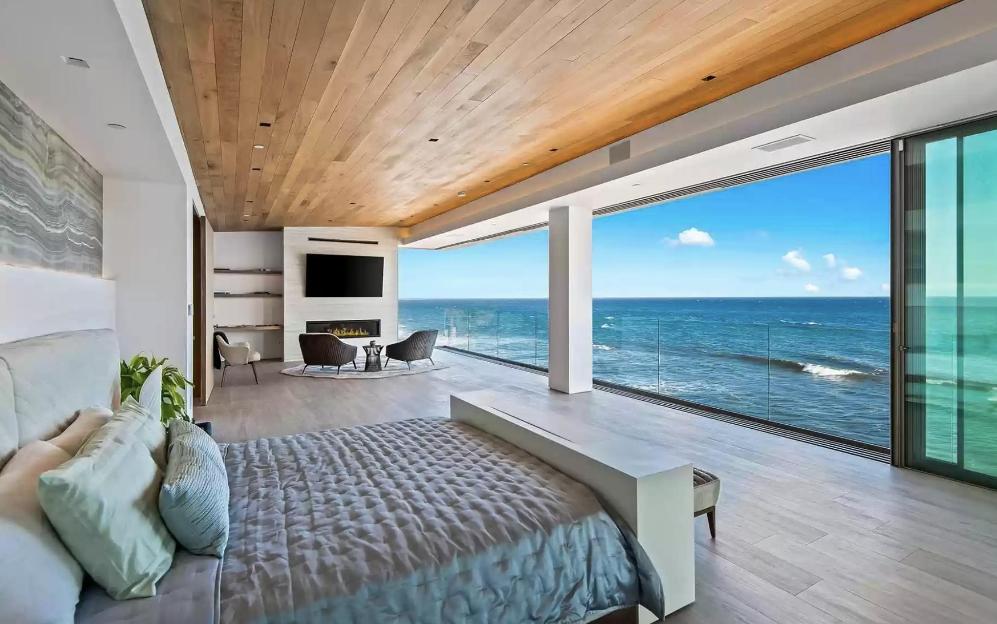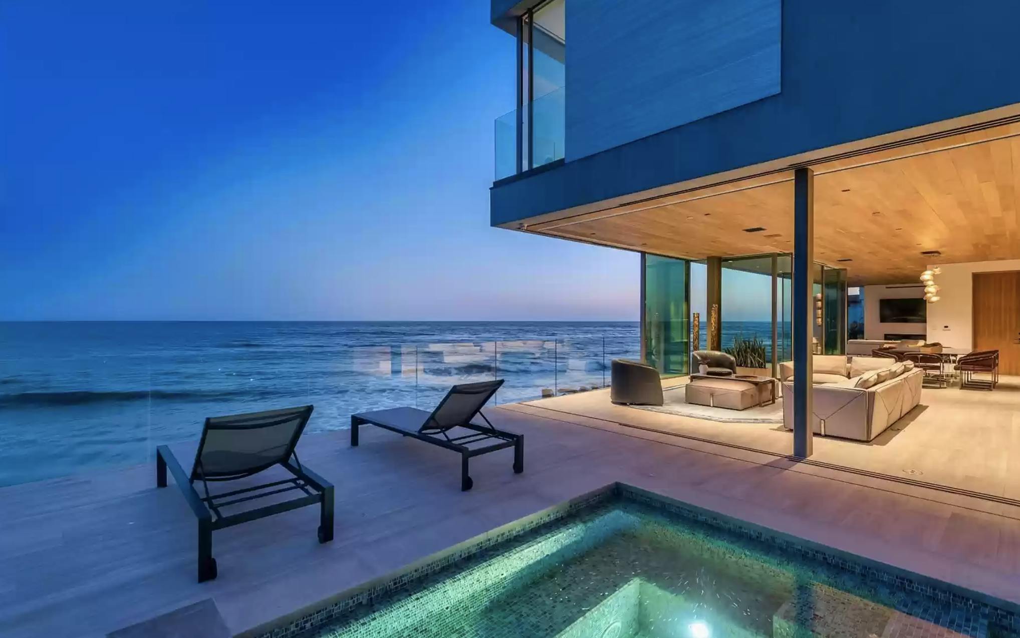 Details: This modern oceanfront home in renowned Malibu, California features abundant floor-to-ceiling glass windows for unparalleled panoramic views. Watch the sunset over the Pacific Ocean from nearly every room in the house, which boasts a sleek, open-concept floor plan. Relax by the pool or in the rooftop hot tub, and cozy up by a multitude of fireplaces dotted throughout the property. This space is perfect for truly enjoying coastal living.