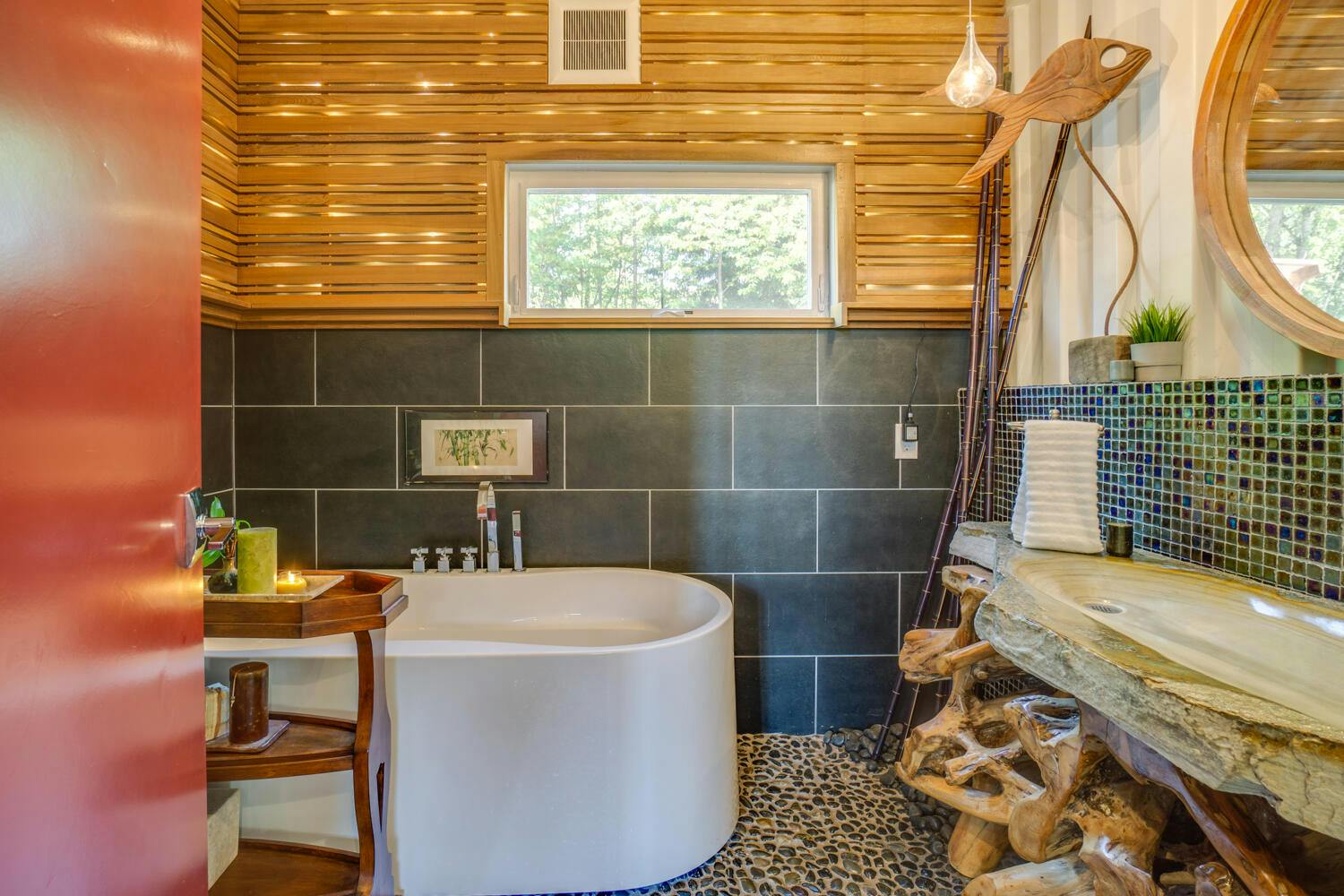 Among her favorite features of the property, the traditional Japanese tearoom, which can be used as a meditation room, is what really makes it feel like you’re inside a sanctuary, James says.