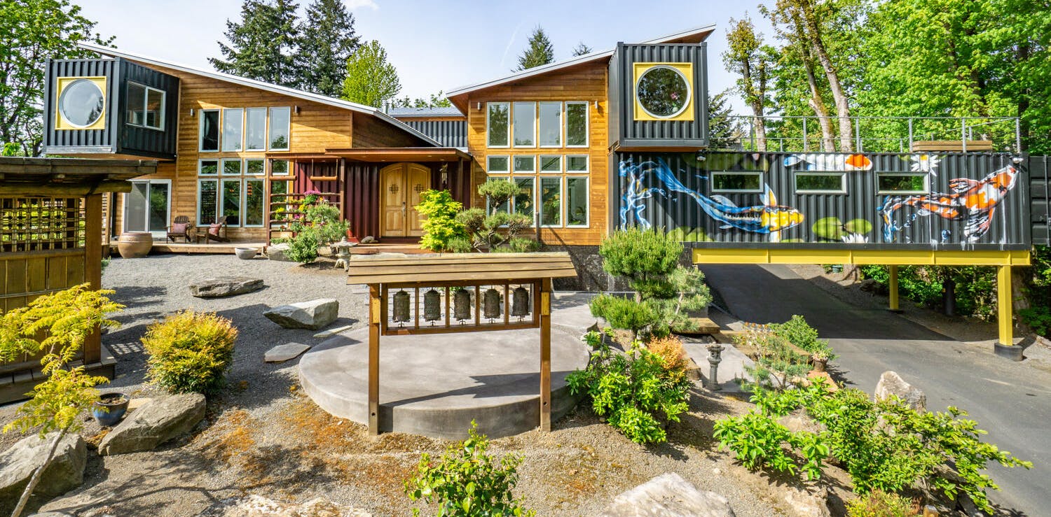 Built using 11 shipping containers and customized with Asian-inspired aesthetics throughout, James says the idea for this one-of-a-kind home in Vancouver, Washington, originated as a sketch on a piece of paper in 2015 by builder, owner and designer Edward Merced.