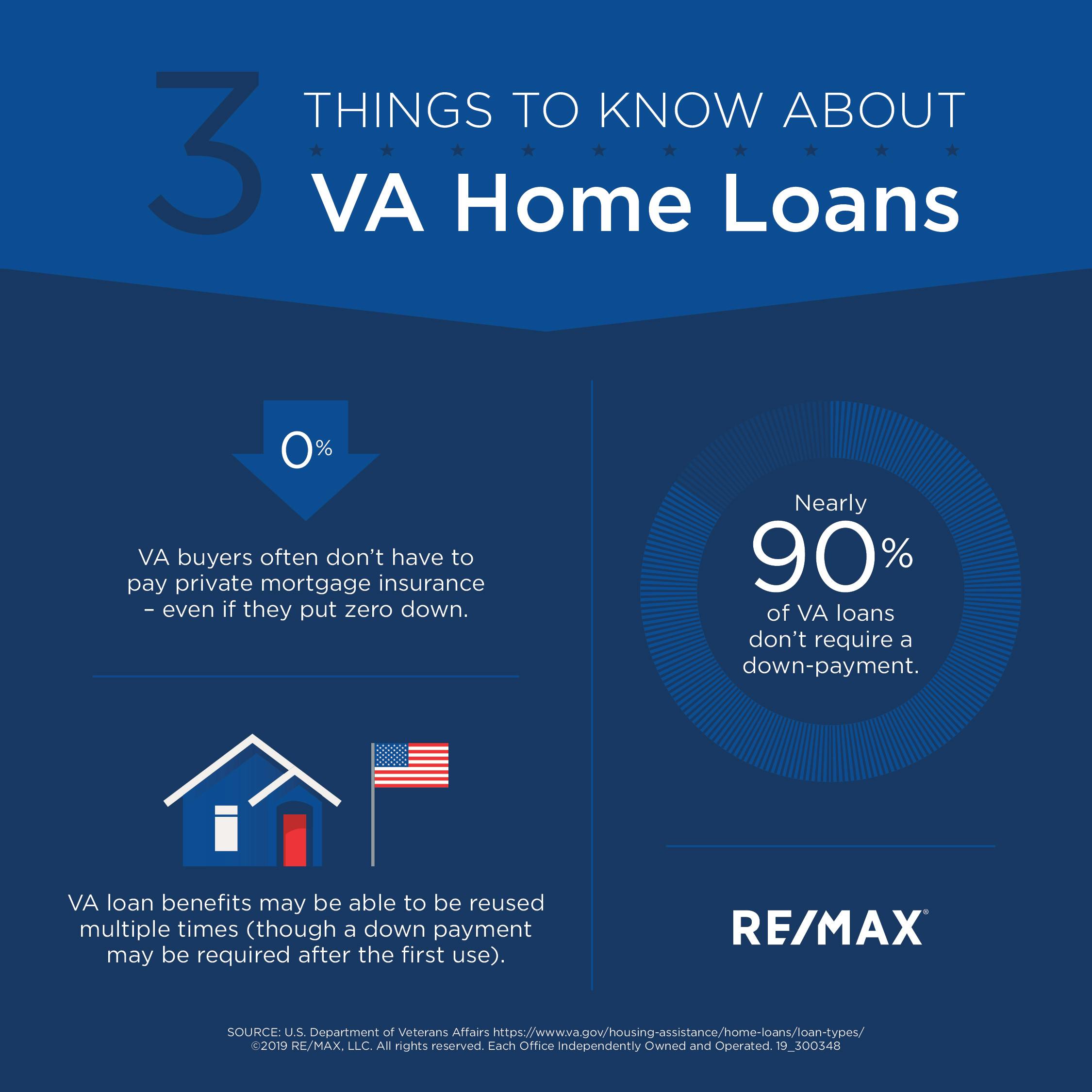 The loan comes with several benefits not found through other funding options. For example, veterans can use a VA loan to purchase a home with no money down. And VA loans don’t require private mortgage insurance (PMI), which is typically necessary on traditional loans if a down payment is under 20% of the home’s cost, because the U.S. government is guaranteeing a portion (25%) of the loan.
